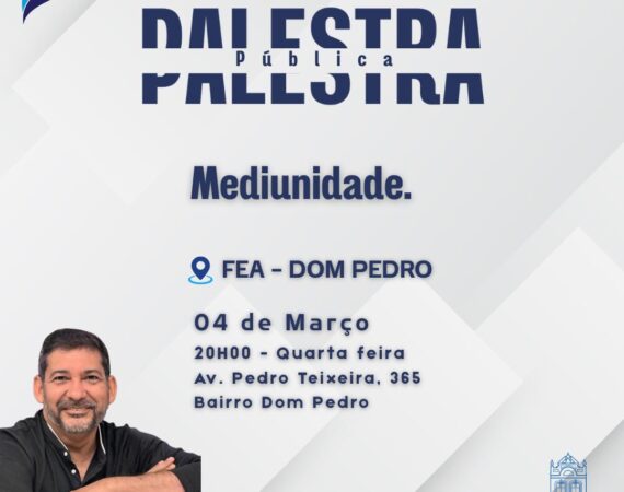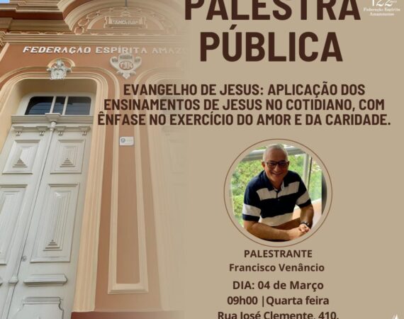 A palestra pública presencial ocorre na sede administrativa nas quartas-feiras. Nesta quarta teremos o tema ”A Nova Era", com Rita de Cássia. Horário de funcionamento: Programe-se para nos visitar: Quarta-feira 04/02/2026 às 20h00. Acompanhe conosco as novidades pelas nossas redes sociais: Facebook FEA bit.ly/fbfeaCanalFEA no YouTube bit.ly/canalfeaWebradio bit.ly/radiofeaInstagram | @feamazonas...