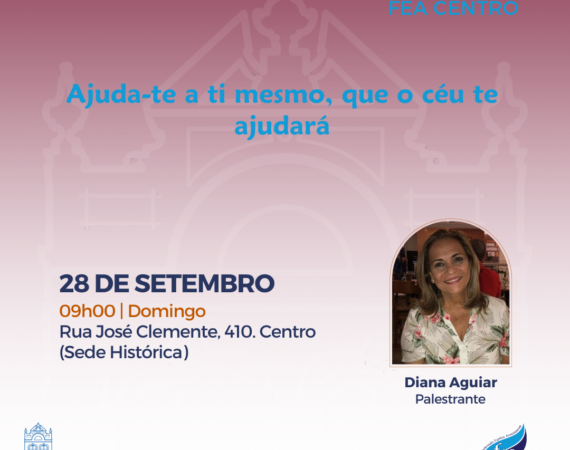 A Sede FEA Centro, nossa sede histórica, está de portas apertas para recebê-los! O tema “Deixai vir a mim as criancinhas: a infância segundo o Espiritismo”, com Fernando Moraes. Programe-se para nos visitar: Quarta-feira 15/10 às 08:30h Acompanhe conosco as novidades pelas nossas redes sociais: Facebook FEA bit.ly/fbfeaCanalFEA no YouTube...