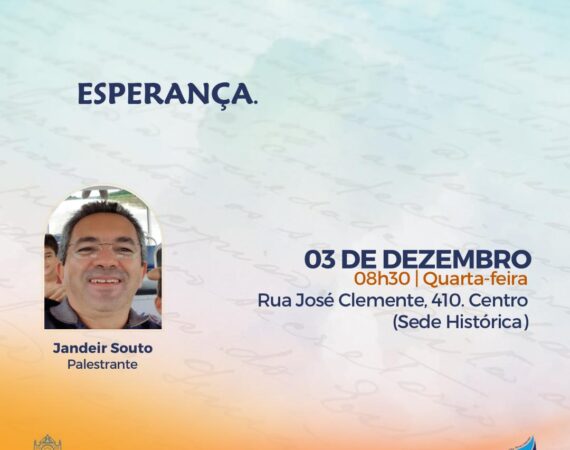 A Sede FEA Centro, nossa sede histórica, está de portas apertas para recebê-los! O tema “Esperança ”, com Jandeir Souto. Programe-se para nos visitar: Quarta-feira 03/12 às 08:30h Acompanhe conosco as novidades pelas nossas redes sociais: Facebook FEA bit.ly/fbfeaCanalFEA no YouTube bit.ly/canalfeaWebradio bit.ly/radiofeaInstagram | @feamazonas bit.ly/igfea