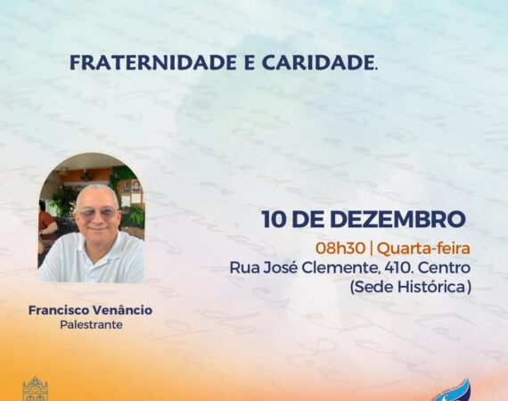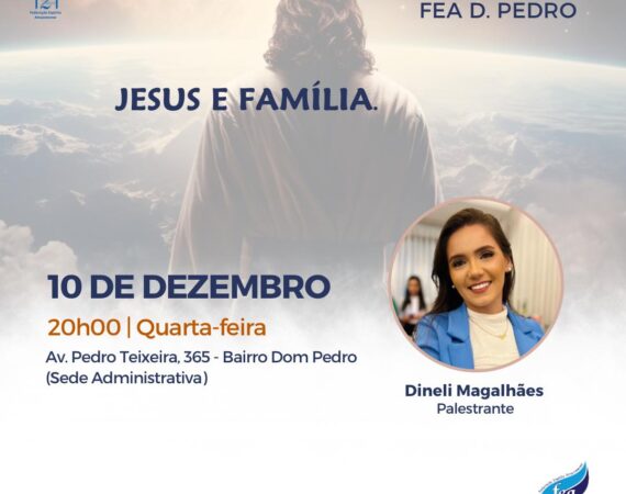 A palestra pública presencial ocorre na sede administrativa nas quartas-feiras. Nesta quarta teremos o tema “Jesus e Família”, com Dineli Magalhães. Horário de funcionamento:FEA Dom Pedro: Quarta-feira 10/12/25 às 20h