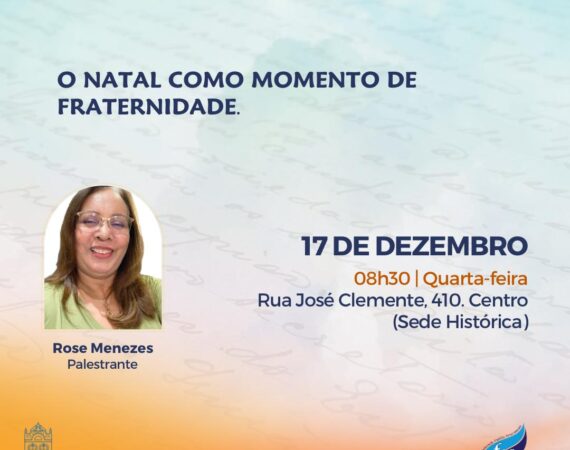 A Sede FEA Centro, nossa sede histórica, está de portas apertas para recebê-los! O tema “O Natal como momento de fraternidade ”, com Rosange Menezes. Programe-se para nos visitar: Quarta-feira 17/12 às 08:30h Acompanhe conosco as novidades pelas nossas redes sociais: Facebook FEA bit.ly/fbfeaCanalFEA no YouTube bit.ly/canalfeaWebradio bit.ly/radiofeaInstagram | @feamazonas...